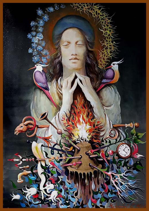 Tűzbagoly etetési ceremónia 40x40 olaj-vászon |